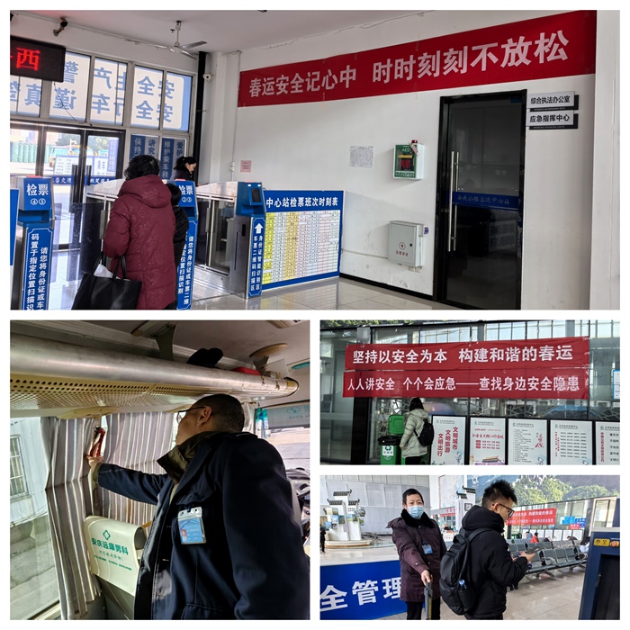 針對春運期間旅客行李增多、安檢壓力增大的情況,安慶公路客運中心站加派了安檢人員,嚴(yán)守安檢通道,嚴(yán)格落實“逢包必檢、逢液必查、逢疑必問”的安檢制度。
